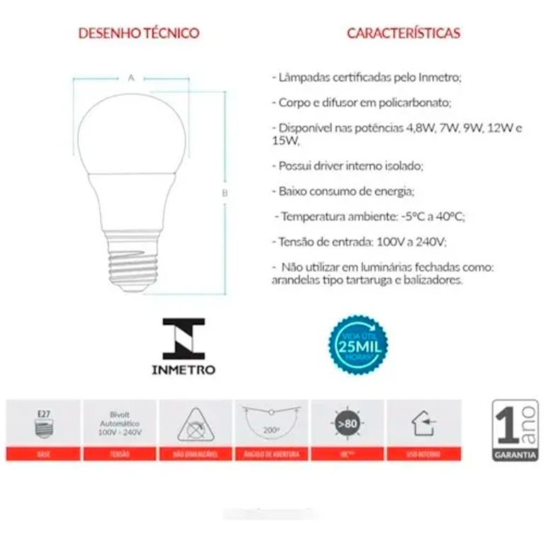 – Lâmpadas certificadas pelo INMETRO.